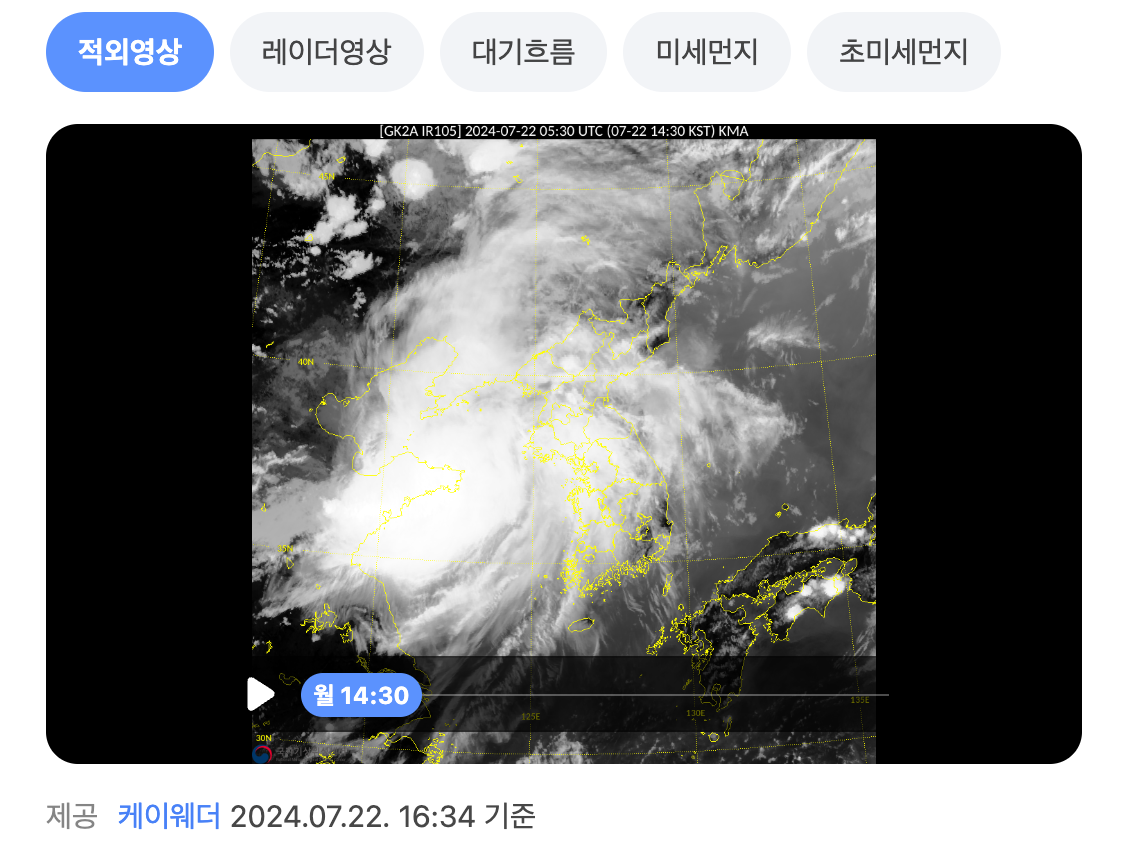 다음 날씨의 영상 메뉴에서 기상 영상을 확인할 수 있습니다.