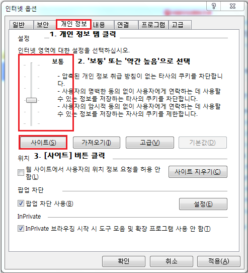 Internet Explorer 쿠키 설정 안내 보기
