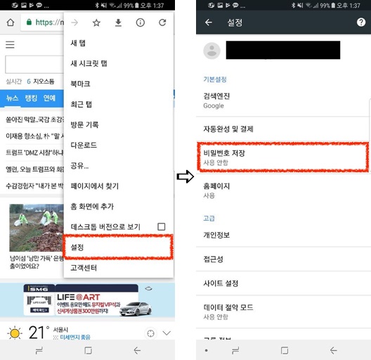 2. 안드로이드 (스마트폰, 스마트패드 등) 브라우저 쿠키 설정 방법